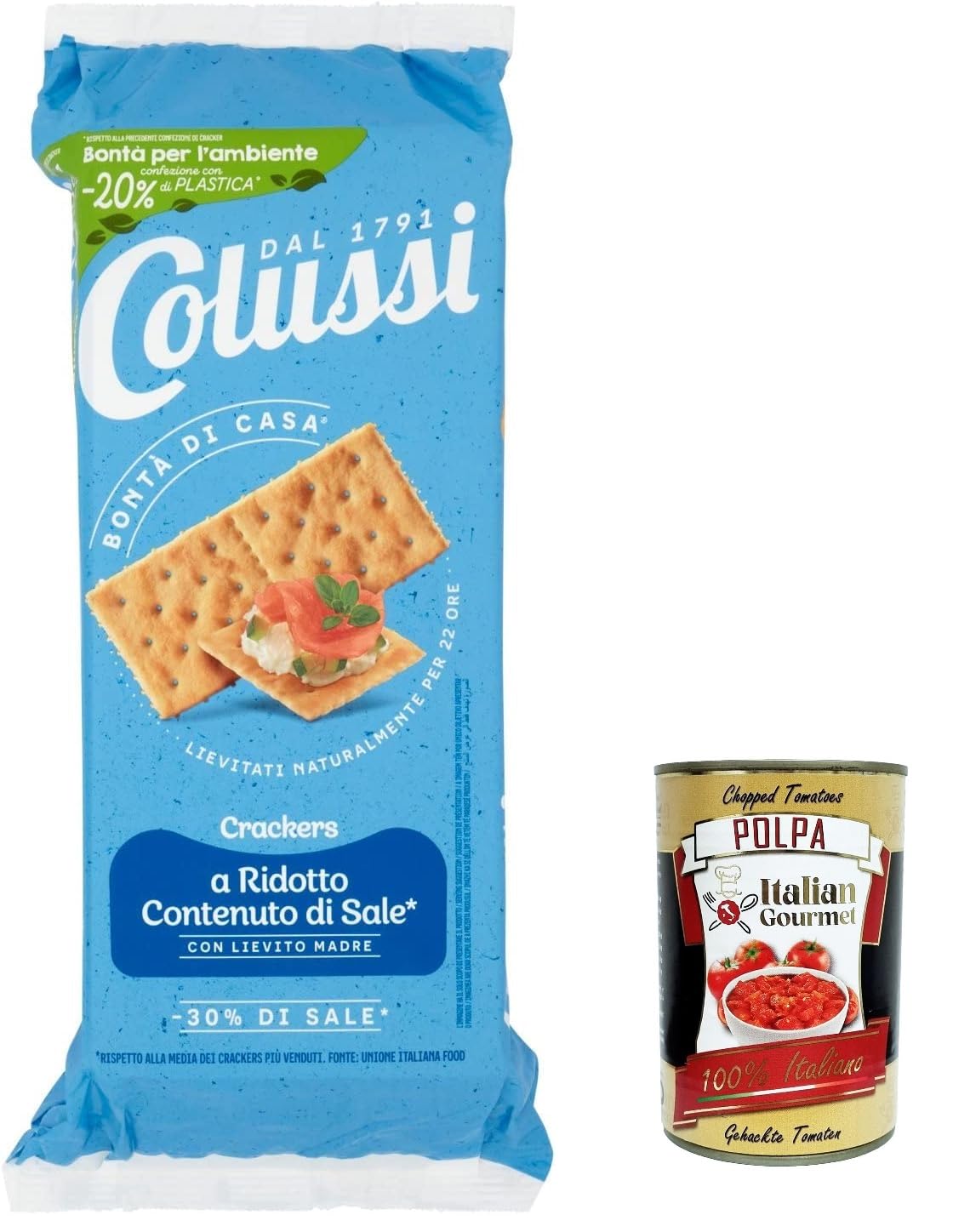 Italian Gourmet E.R. Colussi Cracker 30% Di Dirt Low Salt Cracker 30% Salt 500g + Italian Gourmet Polpa 400g