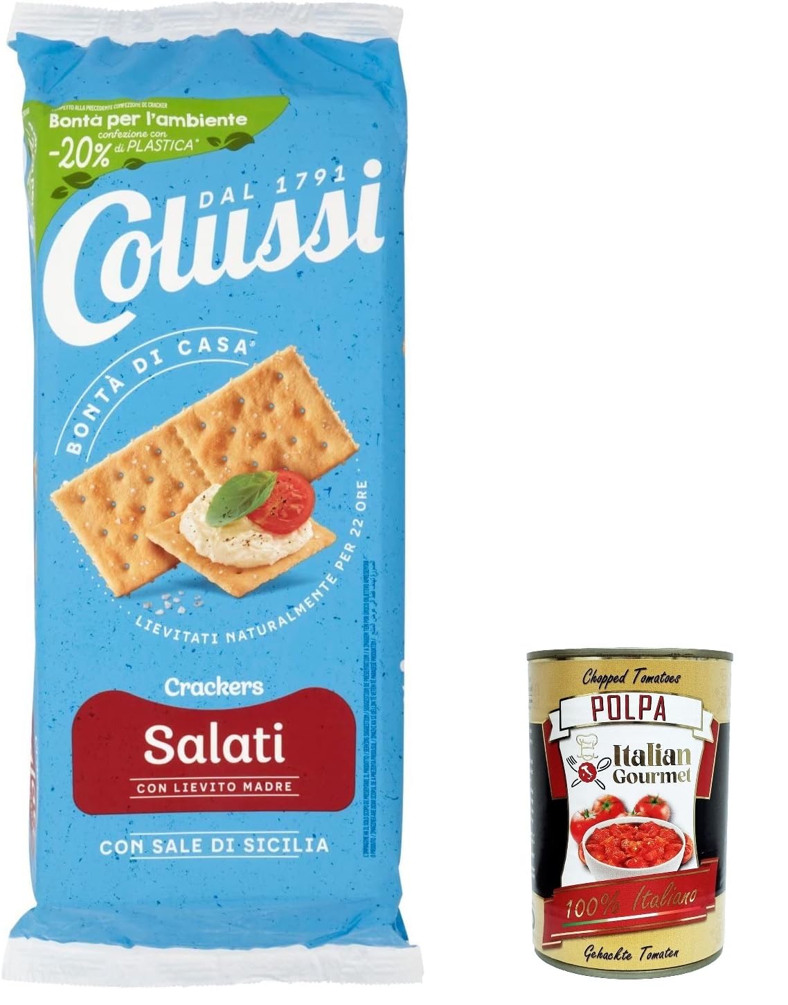 Italian Gourmet E.R. Colussi Cracker Salati Cracker Set of 6 with Durable Flour 500g + Italian Polpa Goumet Polpa 400g