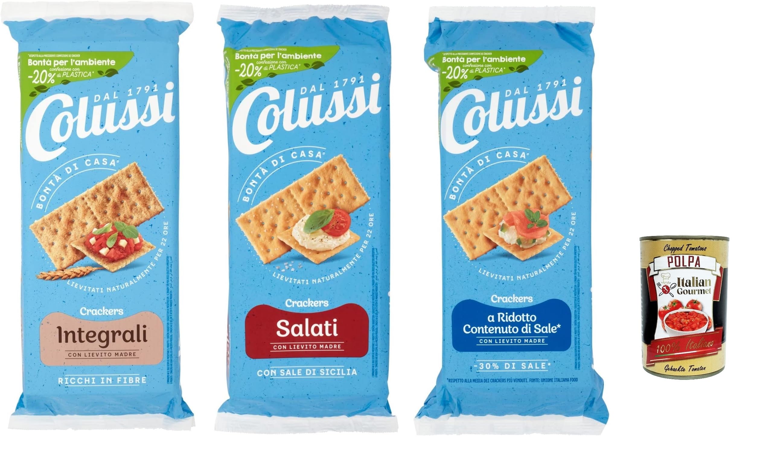 Colussi Crackers Kit de test salati, 30 sale, Integrali 3 x 500 g polpa italien gourmet 400 g