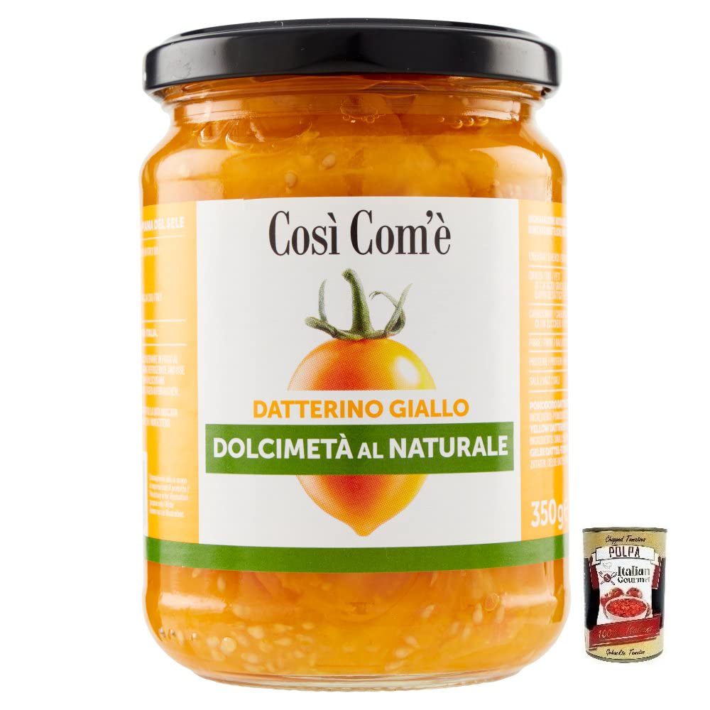 Così Com'è Datterino Giallo Dolcimetà Tomate jaune Datterino coupée en deux, tomates italiennes, pot de 350 g boîte italienne Gourmet Polpa di Pomodoro 400 g