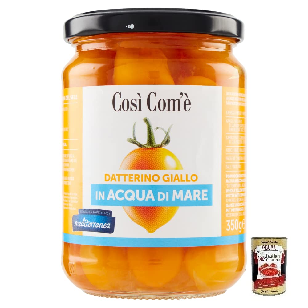 Così Com'è Datterino Giallo, tomate jaune Datterino dans l'eau de mer, tomates italiennes, pot de 350 g boîte italienne Gourmet Polpa di Pomodoro 400 g