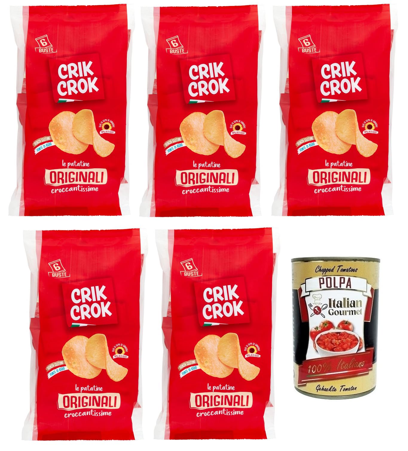 Crik Crok Le Patatine Originali, chips de pommes de terre sans gluten, collation salée, paquet de 150 g, chaque paquet contient 6 sachets de 25 g Polpa di Pomodoro Italian Gourmet Polpa di Pomodoro