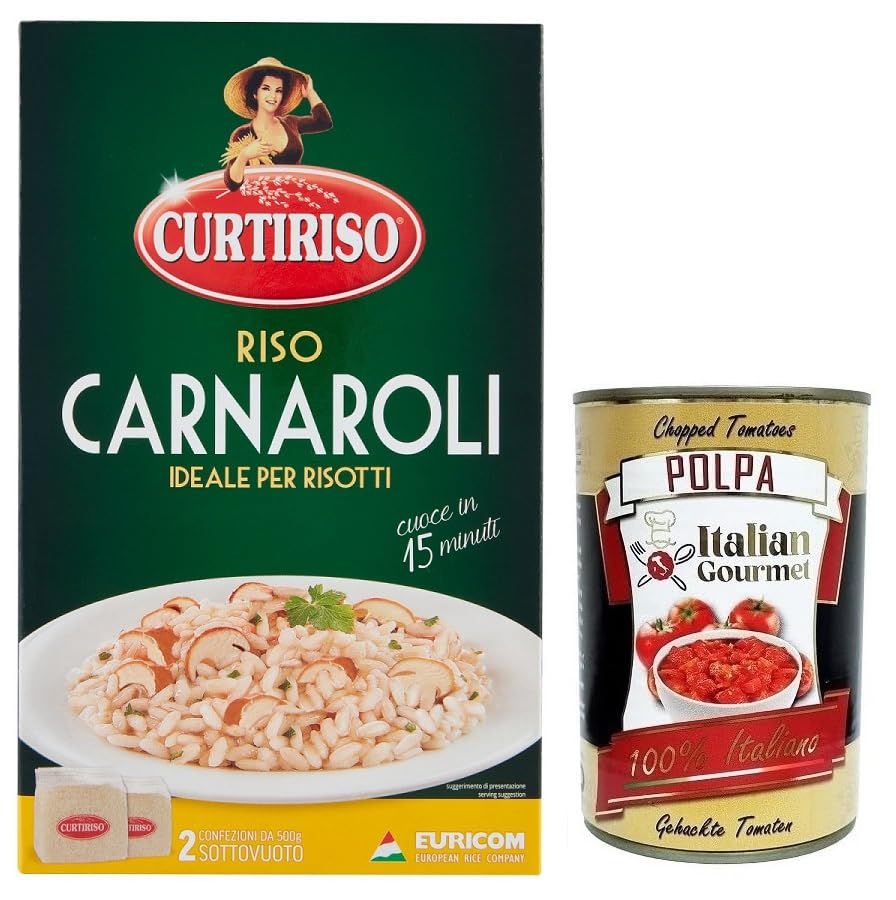 Curtiriso Riso Carnaroli, 100 riz italien, idéal pour les risottos, temps de cuisson 15 minutes, paquet de 1 kg boîte italienne Gourmet Polpa di Pomodoro 400 g