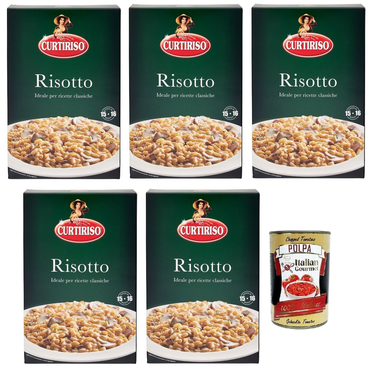 Curtiriso Riso Risotti 100 riz italien Idéal pour les risottos, 16 minutes, paquet de 1 kg boîte italienne Gourmet Polpa di Pomodoro 400 g