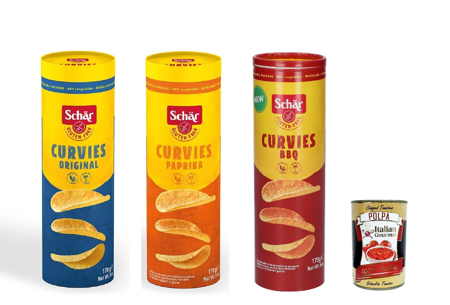 Paquet de test Curvies, chips classiques, collation copieuse à base de pommes de terre, sans gluten et sans huile de palme, végétalien, 3 x 170 g, avec Italian Gourmet Polpa 400 g