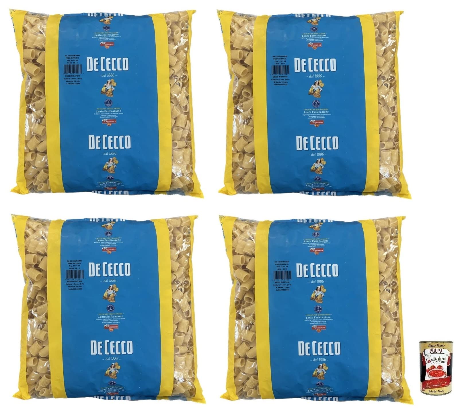 De Cecco Mezzi Rigatoni Pasta di Semola di Grano Duro Lot de 4 pâtes en semoule de blé dur 3 kg boîte Italian Gourmet Polpa di Pomodoro 400 g