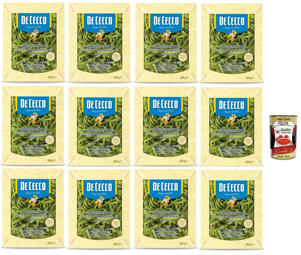 Italian Gourmet E.R. De Cecco Pack of 12 Egg Tagliatelle No. 107 with Spinach and Italian Gourmet Polpa 400g