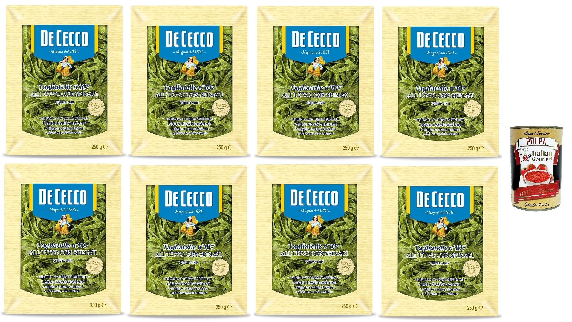 De Cecco Lot de 8 tagliatelles à œufs n 107 avec épinards et polpa italien Gourmet 400 g