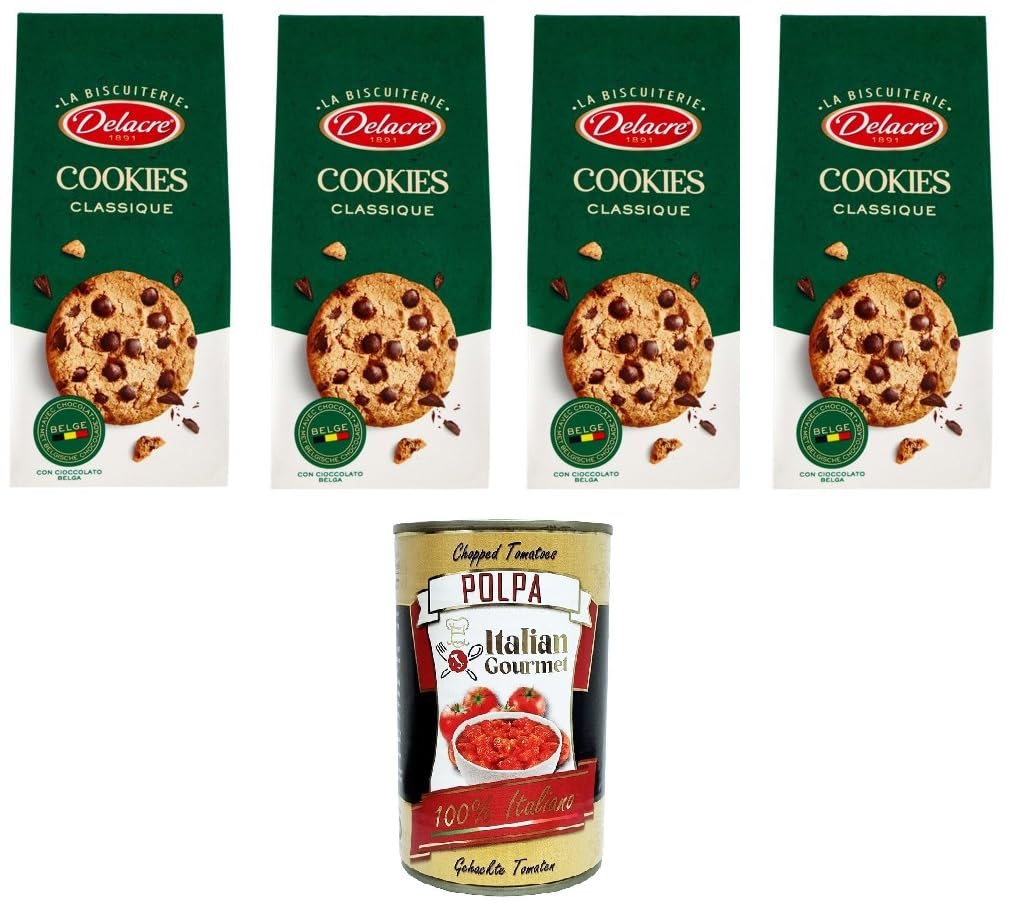 Delacre La Biscuiterie Classic Biscuits 136g - Crispy butter biscuits - Belgian dark chocolate chips. Indulge in. Our biscuits: hazelnut, double and triple chocolate. Delacre 1891 La Biscuiterie is the fruit of Delacre's expertise and offers a wide selection of biscuits with an irresistibly delicious taste. Let yourself be captivated by our refined biscuit creations, inspired by the tradition of French pastry and combined with inimitable Belgian chocolate for a rich experience. Chocolate biscuits: Wheat flour, chocolate chips (23 ) (sugar, cocoa mass, cocoa butter, dextrose, emulsifier: lecithin, flavoring), butter (21 ), sugar, brown sugar, powdered eggs, salt, raising agents: sodium carbonates, ammonium carbonate, flavoring, barley malt extract. May be used with hazelnuts, macadamia nuts. Nuts, pecans, and soy included INGREDIENTS Wheat flour, chocolate chips (sugar, cocoa mass, cocoa butter, dextrose, emulsifier: lecithin, flavoring), butter (21 ), sugar, brown sugar, powdered eggs, salt, raising agents: sodium carbonate, ammonium carbonate, flavoring, barley malt extract. May be used with hazelnuts, macadamia nuts, pecans, and soy. Yes, included.Delacre La Biscuiterie Cookies Classique La Biscuiterie Biscuiterie Biscuiterie Classique 4 x 136 g Italian Gourmet Polpa 400 gDESCRIPTION DU PRODUIT DESCRIPTION DU PRODUIT Delacre La Biscuiterie Biscuits Classiques 136g - Biscuits au beurre croustillants - Pépites de chocolat noir belges Laissez-vous tenter par. Nos biscuits : noisette, double et triple chocolat. Delacre 1891 La Biscuiterie est le fruit du savoir-faire de Delacre et propose un large choix de biscuits au goût irrésistiblement délicieux. Laissez-vous envoûter par les créations de biscuits raffinés, inspirés de la tradition de la pâtisserie française et combinés avec l'inimitable chocolat belge pour une expérience riche. Biscuits au chocolat Farine de blé pépites de chocolat (23 ) (sucre, pâte de cacao, beurre de cacao, dextrose, émulsifiant : lécithine, arôme) beurre (21 ) sucre sucre brun œufs en poudre sel levante : carbonates de sodium, carbonate d'ammonium arôme extrait de malt d'orge Peut être utilisé noisettes, macadamiana. Noix, pécan Noix et soja inclus INGRÉDIENTS Farine de blé pépites de chocolat (sucre, pâte de cacao, beurre de cacao, dextrose, émulsifiant : lécithine, arôme) beurre (21 ) sucre sucre brun œufs en poudre sel levante : carbonate de sodium, carbonate d'ammonium arôme extrait de malt d'orge Peut être utilisé noisettes, noix de macadamia, péc. noix et sodas Oui inclus