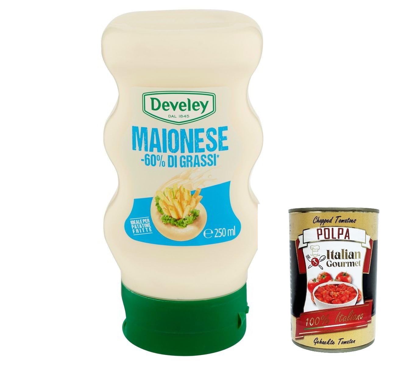 Italian Gourmet E.R. Develey Pack of 3 bottles of Light Mayonnaise 60% top down 250ml + gourmet Italian polpa 400g