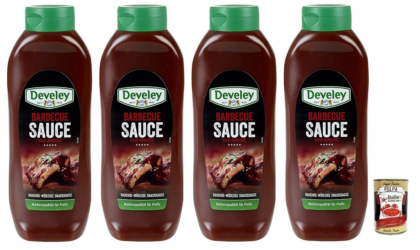 Gourmet Italian Gourmet Polpa di Pomodoro 400g - For over 170 years, tradition and innovation have been the foundation of the consistently high quality of Develey products. From carefully selected and controlled raw materials throughout the production process to marketing, from agronomists working closely with producers to continuous laboratory analysis and the elimination of preservatives and chemical additives as much as possible from the production process, Develey consistently strives to offer consumers the highest quality products. Delicacies from around the world, ready to satisfy a rapidly evolving market: this barbecue sauce, with its characteristic smoky aroma, is ideal for grilled meats or as a base for sandwiches and hamburgers. Suitable for a gluten-free diet. Ingredients: Tomato paste, sugar, red wine vinegar, concentrated pineapple juice, distilled vinegar, salt, modified corn starch, caramelized sugar syrup, spices (including mustard and celery), rapeseed oil, thickener (xanthan gum), smoke flavoring. Allergens: Celery, mustard, gluten-free. Nutritional values ( ) per 100g ml: Energy 649 kJ 153 kcal Fat 0.9 g, of which saturates 0.1 g Carbohydrate 34.3 g, of which sugars 32.1 g Protein 0.8 g. 70 INGREDIENTS Tomato paste, sugar, red wine vinegar, concentrated pineapple juice, distilled vinegar, salt, modified corn starch, caramelized sugar syrup, spices (including mustard and celery), rapeseed oil, thickener (xanthan gum), smoke flavoring.Develey Salsa Lot de 4 sauce barbecue sans gluten 875 ml boîte de 400 gDESCRIPTION DU PRODUIT DESCRIPTION DU PRODUIT Gourmet Italian Gourmet Polpa di Pomodoro 400 g - Depuis plus de 170 ans, la tradition et l'innovation sont à la base de la qualité élevée et constante des produits Develey. Des matières premières sélectionnées et contrôlées de la production à la mise sur le marché, des agronomes en contact étroit avec le producteur, des analyses en laboratoire constantes, l'élimination la plus large possible des conservateurs et des additifs chimiques du processus de production sont la voie que Develey poursuit constamment pour offrir aux consommateurs des produits de la plus haute qualité. Des délices du monde entier, prêts à satisfaire un marché en évolution rapide : la sauce barbecue avec son arôme de fumée caractéristique est idéale en combinaison avec de la viande grillée ou comme base pour les sandwichs et hamburgers. Idéal pour un régime sans gluten. Ingrédients : pâte de tomate, sucre, vinaigre de vin rouge, jus d'ananas concentré de jus d'ananas, vinaigre de vie, sel, amidon de maïs modifié, sirop de sucre caramélisé, épices (avec moutarde, céleri), huile de colza, épaississant (xanthane), arôme de fumée. Allergènes : céleri, moutarde, sans gluten Valeurs nutritionnelles ( ) pour 100 g ml Produit : Valeur énergétique 649 kJ 153 kcal Matières grasses 0,9 g Dont acides gras saturés 0,1 g Glucides 34,3 g dont sucres 32,1 g Protéines 0,8 g. 70 INGRÉDIENTS pâte de tomate, sucre, vinaigre de vin rouge, jus d'ananas concentré de jus d'ananas, vinaigre de vie, sel, amidon de maïs modifié, sirop de sucre caramélisé, épices (avec moutarde, céleri), huile de colza, épaississant (xanthane), arôme de fumée.