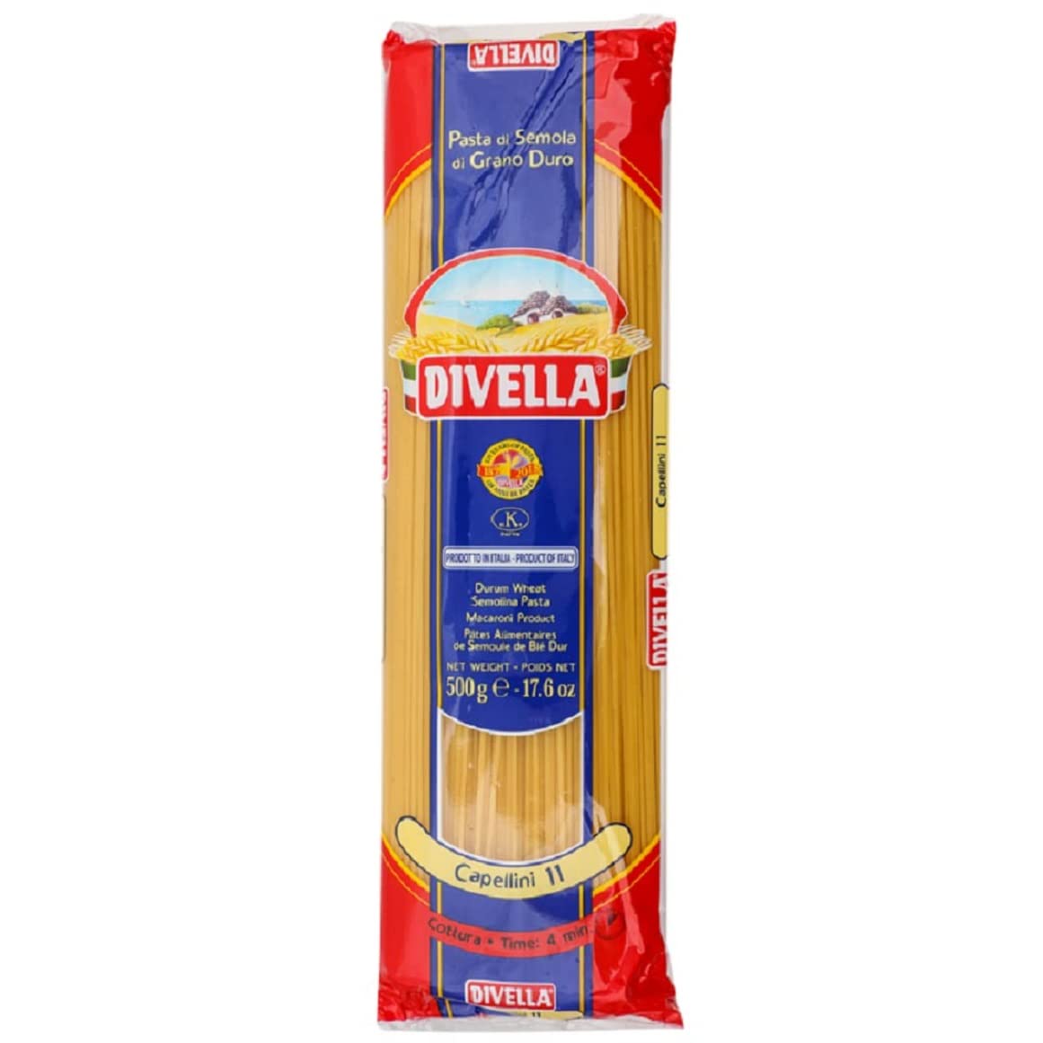 Divella Capellini N. 11 Lot de 10 pâtes à la semoule de blé dur 500 g boîte italienne Gourmet Polpa di Pomodoro 400 g