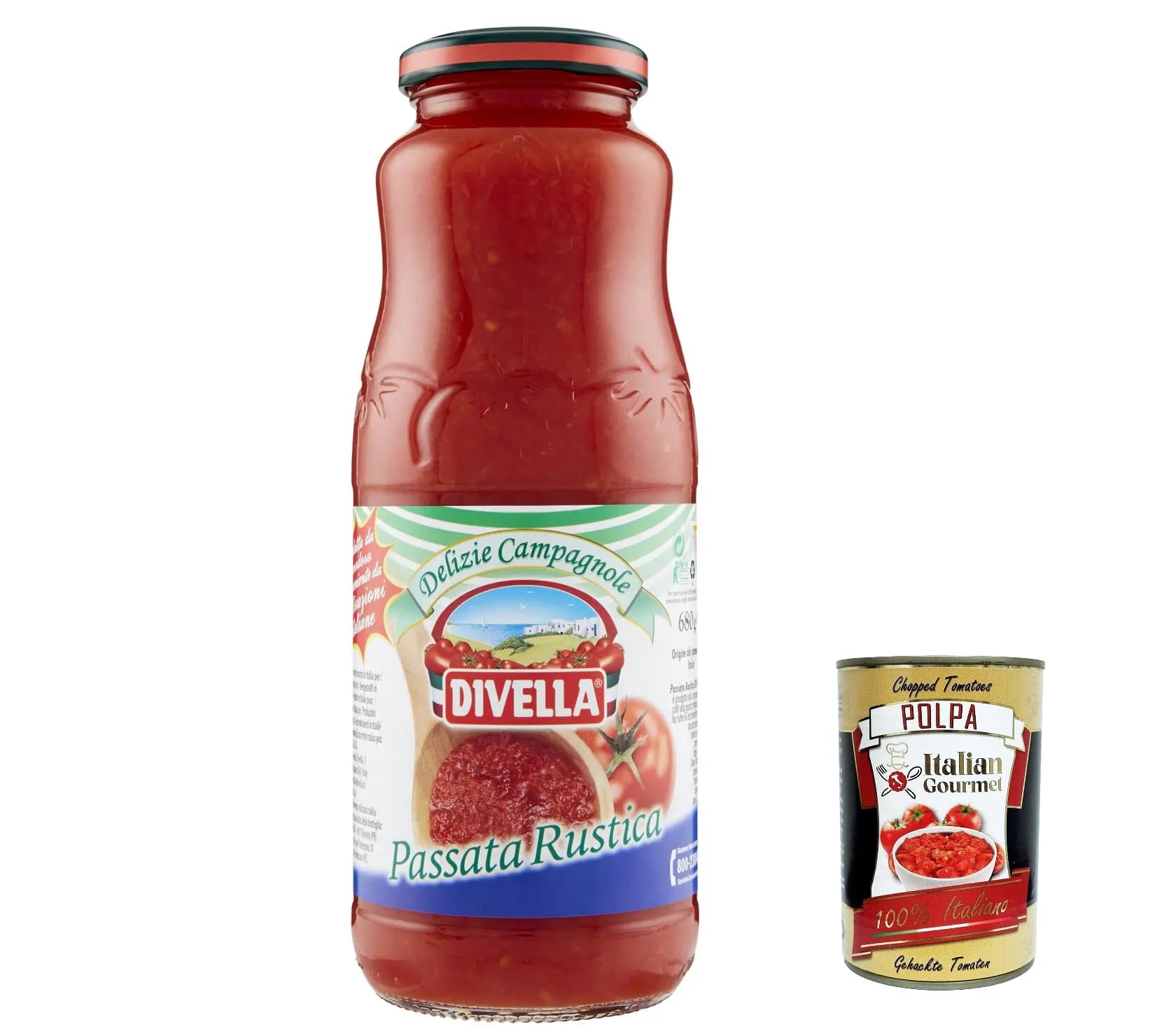 Italian Gourmet E.R. Divella Delizie Campagnole Passata Rustica Lot de 6 p tes de tomates sauce tomate 100 % italienne 680 g + Italian Gourmet Polpa 400 g