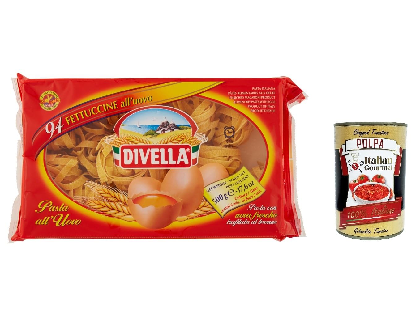 Italian Gourmet E.R. Divella Egg Fettuccine Pasta No. 94 Lot de 4 p tes aux ufs 500 g + Italian Gourmet polpa 400 g