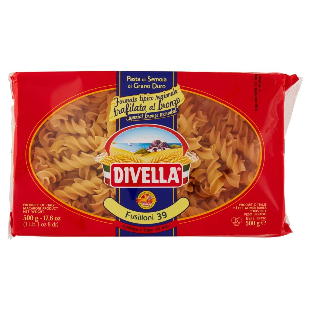 Italian Gourmet E.R. Divella Fusilloni No. 39 Pack of 12 durum wheat semolina pasta 500g + Italian Gourmet Polpa di Pomodoro 400g