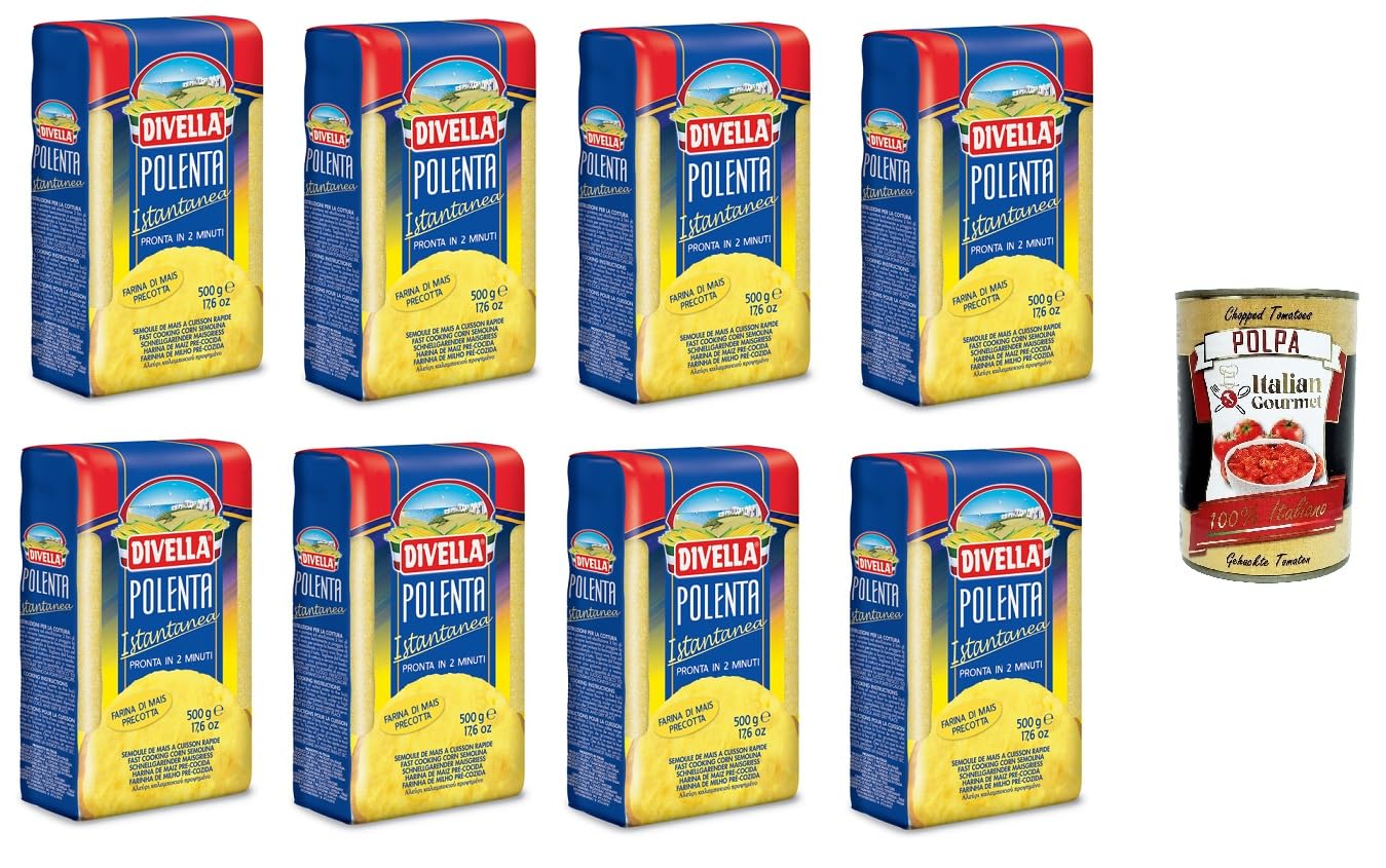 Italian Gourmet E.R. Divella Instant Lot of 8 boxes of 400 g Polenta Mehl Gr.500 + Italian Gourmet Pulp