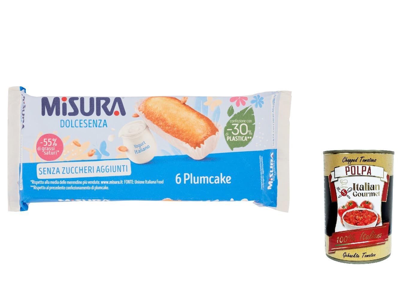 Misura Plumcake Allo Yogourt Dolcesenza Lot de 12 gâteaux au yaourt et aux prunes, sans sucre ajouté, 190 g polpa Italian Gourmet 400 g