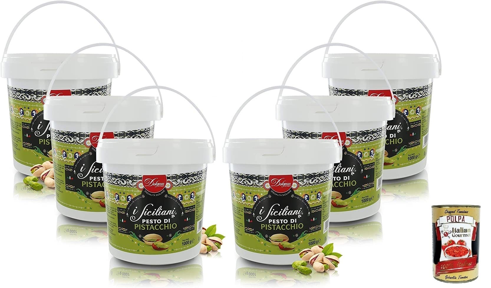 Italian Gourmet E.R. Dolgam I Siciliani Pesto Gluten Free Pistachio Sicilian Specialities 1000 g Bucket Sicilian Pistachios with 65% + 400 g Gourmet Italian Gourmet Polpa di Pomodoro Box of 600 g