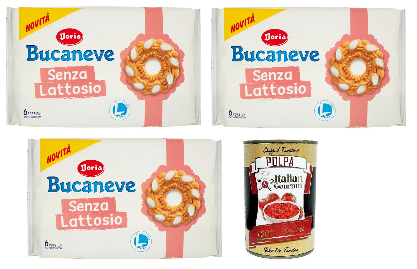 Italian Gourmet E.R. Doria Bucaneve Senza Lattosio Set of 3 Lactose Free Shortcrust Dough Cookies Pack of 265 g Each Pack Contains 6 Individual Portions + Tomato Pulp Italian Gourmet Tomato Pulp 400