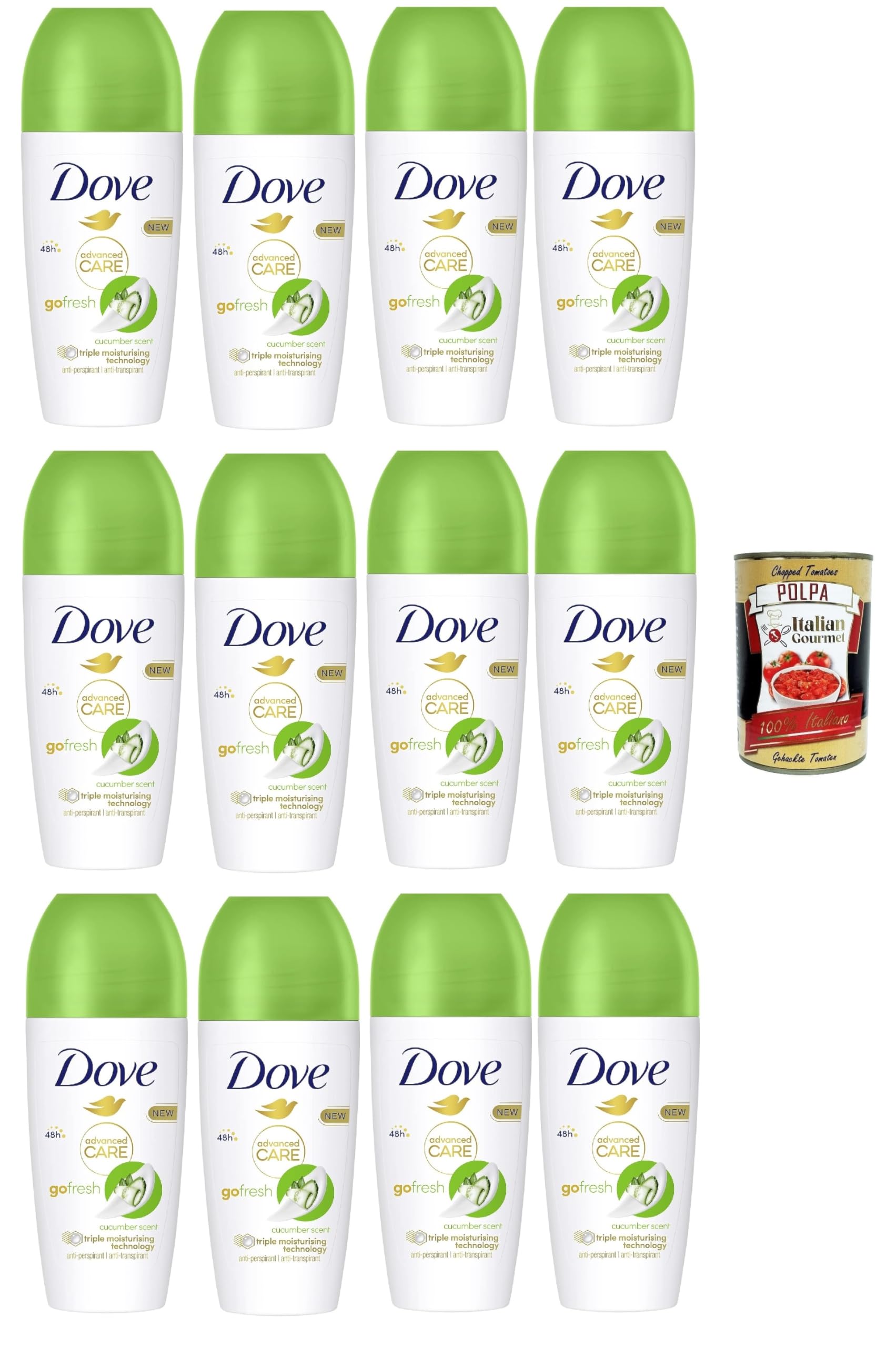 Ingredients: Water, Glycerin, Aluminum Sesquichlorohydrate, Sunflower Seed Oil, Steareth-2, Fragrance, Steareth-20, Calcium Chloride, Glycine, Disodium EDTA, Pentaerythrityl Tetra-di-t-butyl Hydrocinnamate, Alpha-Isomethyl Ionone, Alkyl Alcohol, Benzyl Salicylate, Citronellol, Coumarin, Hexyl Cinnamal, Limonene, Linalool. INGREDIENTS Ingredients: Water, Glycerin, Aluminum Sesquichlorohydrate, Sunflower Seed Oil, Steareth-2, Fragrance, Steareth-20, Calcium Chloride, Glycine, Disodium EDTA, Pentaerythrityl Tetra-di-t-butyl Hydrocinnamate, Alpha-Isomethyl Ionone, Alkyl Alcohol, Benzyl Salicylate, Citronellol, Coumarin, Hexyl Cinnamal, Limonene, Linalool. SAFETY WARNING The Anti-Drainage Stick, in which the original nourishing oil stick cares for underarm skin and provides softness and protection even after shaving. Formulated with the legendary 1 4 moisturizing cream, it helps regulate perspiration, remaining protected and hydrating for up to 48 hours after each application. See moreIngredients: Water, Glycerin, Aluminum Sesquichlorohydrate, Sunflower Seed Oil, Steareth-2, Fragrance, Steareth-20, Calcium Chloride, Glycine, Disodium EDTA, Pentaerythrityl Tetra-di-t-butyl Hydrocinnamate, Alpha-Isomethyl Ionone, Alkyl Alcohol, Benzyl Salicylate, Citronellol, Coumarin, Hexyl Cinnamal, Limonene, Linalool. Recyclable Packaging: All roll-ons with advanced sourcing use 20 less plastic than the previous packaging and are made from 100 recyclable materials. Up to 48-Hour Protection: With the fresh scent of cucumber and green tea, it is effective and protects for up to 48 hours after application. Triple Moisturizing Formula: Supports the skin's natural repair process and cares for even the most sensitive skin. Roll on Advanced Care Citriolo and Green Tea Deodorant: care for your underarms without sacrificing protection with the Advanced Care Citriolo and Green Tea roll-on. Free 400g Italian gourmet bottle.Dove Roll On Advanced Care Déodorant anti-déodorant anti-déminéralisant Formule sensible triple action hydratante 48 heures 12 x 50 ml Italian Gourmet Polpa 400 gDESCRIPTION DU PRODUIT DESCRIPTION DU PRODUIT Ingrédients : eau, glycérine, sesquichlorohydrate d'aluminium, huile de graines d'hélianthus annus, stéareth-2, parfum, stéareth-20, chlorure de calcium, glycine, EDTA disodique, pentaerythrityl tétra-di-t-butyl hydrocinnamate, alpha-isomethyl ionone, alcyle alcyle ohol, benzyl sable. alicylate, citronellol, coumarine, hexyl cinnamal, limonène, linalool. INGRÉDIENTS Ingrédients : eau, glycérine, sesquichlorohydrate d'aluminium, huile de graines d'hélianthus annus, stéareth-2, parfum, stéareth-20, chlorure de calcium, glycine, EDTA disodique, pentaerythrityl tétra-di-t-butyl hydrocinnamate, alpha-isomethyl ionone, alcyle alcyle ohol, benzyl sable. alicylate, citronellol, coumarine, hexyl cinnamal, limonène, linalool. AVERTISSEMENT DE SÉCURITÉ L'anti-drainage, dans lequel le bâton original à l'huile nutritive prend soin de la peau des aisselles et offre délicatesse et protection même après le rasage. Formulé avec le légendaire 1 4 de crème hydratante, il aide à réguler la transpiration en restant protégé et hydratant jusqu'à 48 heures après chaque application. Voir plusIngrédients : eau, glycérine, sesquichlorohydrate d'aluminium, huile de graines d'hélianthus annus, stéareth-2, parfum, stéareth-20, chlorure de calcium, glycine, EDTA disodique, pentaerythrityl tétra-di-t-butyl hydrocinnamate, alpha-isomethyl ionone, alcyle alcyle ohol, benzyl sable. alicylate, citronellol, coumarine, hexyl cinnamal, limonène, linalool. Emballage recyclable : tous les rouleaux dont l'approvisionnement avancé est 20 moins plastique que l'emballage précédent et sont fabriqués à 100 à partir de matériaux recyclables. Jusqu'à 48 heures de protection : avec la fraîcheur de son parfum concombre et thé vert, il est efficace et protège jusqu'à 48 heures après l'application. Triple formule hydratante : soutient le processus naturel de réparation de la peau et prend soin des peaux les plus sensibles. Roulez sur Advanced Care Citriolo et Green Tea Déodorant : prenez soin de vos aisselles sans sacrifier la protection avec le rouleau de soin Citriolo et Thé Vert Advanced Care. Flacon gourmet italien gratuit 400 g.