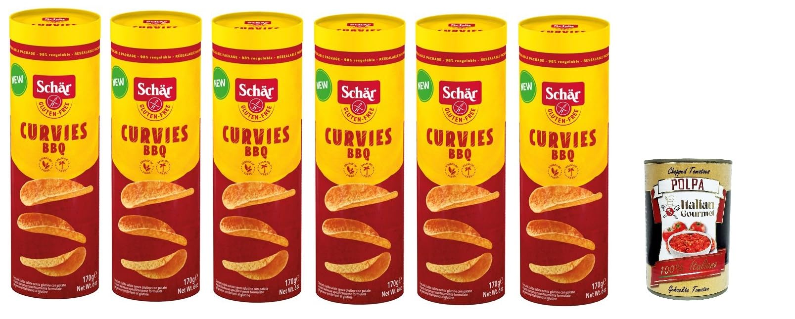 Dr. Schar Curvies Lot de 6 chips pour barbecue sans gluten 170 g Italian Gourmet Polpa di Pomodoro boîte de 400 g