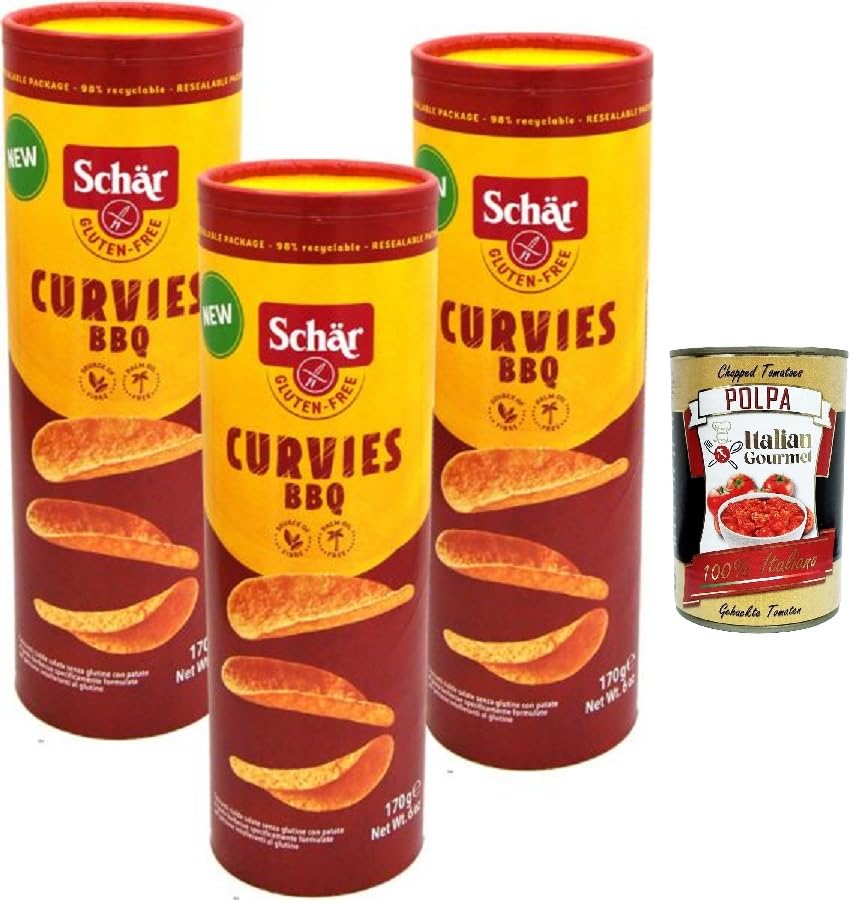 Italian Gourmet E.R. Dr. Schar Curvies Gluten Free BBQ Chips 170g + Italian Gourmet Polpa di Pomodoro 400g Box