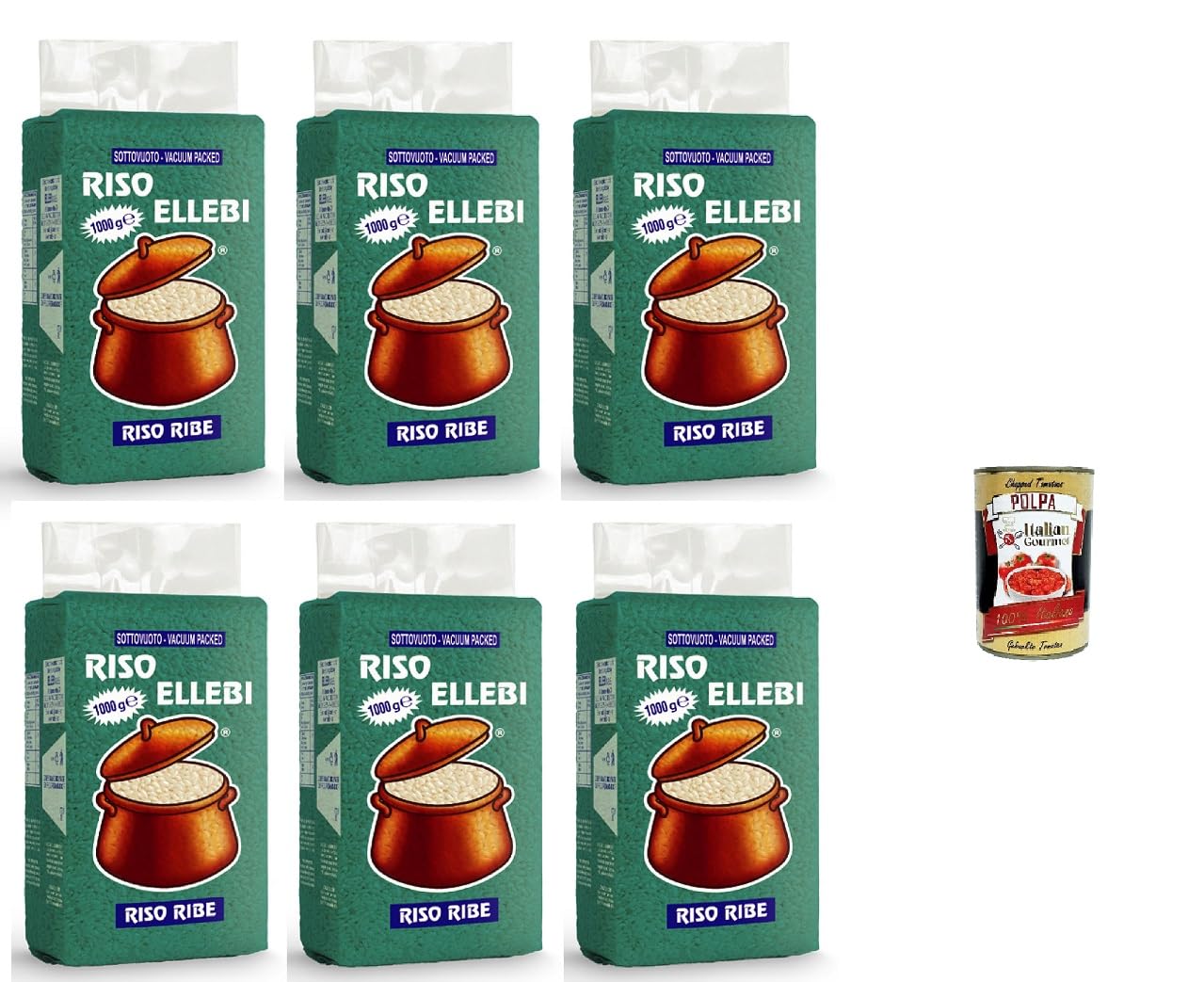 ElleBi' Riso Ribe Lot de 6 boîtes de riz 1 kg polpa gastronomique italien 400 g
