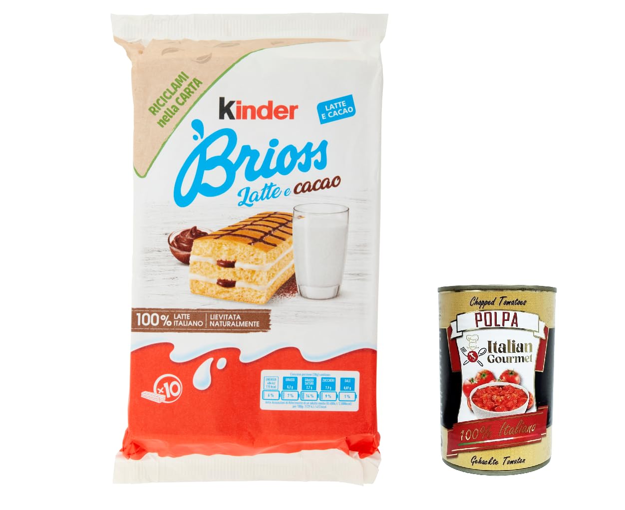 Italian Gourmet E.R. Ferrero Brioss Children's Biscuit Bars with Milk and Cocoa 300 g + Italian Gourmet Polpa 400 g Set of 3