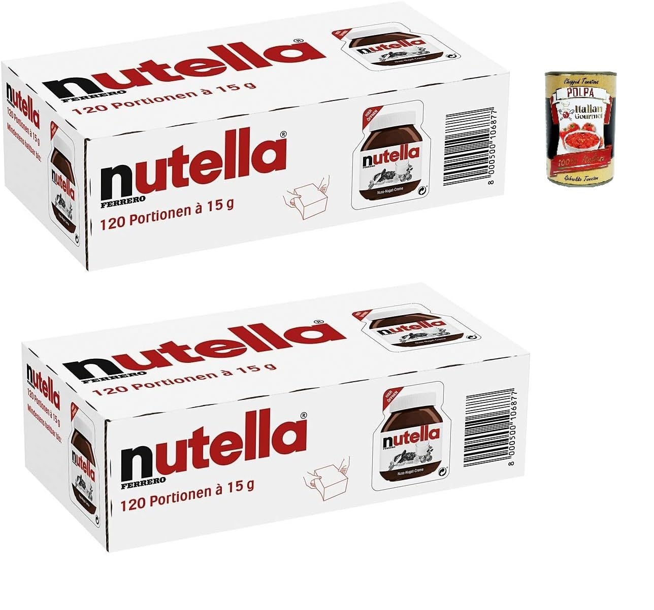 Italian Gourmet E.R. Ferrero Nutella Pack of 240 15g portions of Nougat Chocolate Cream Bread + Italian Gourmet Polpa 400g