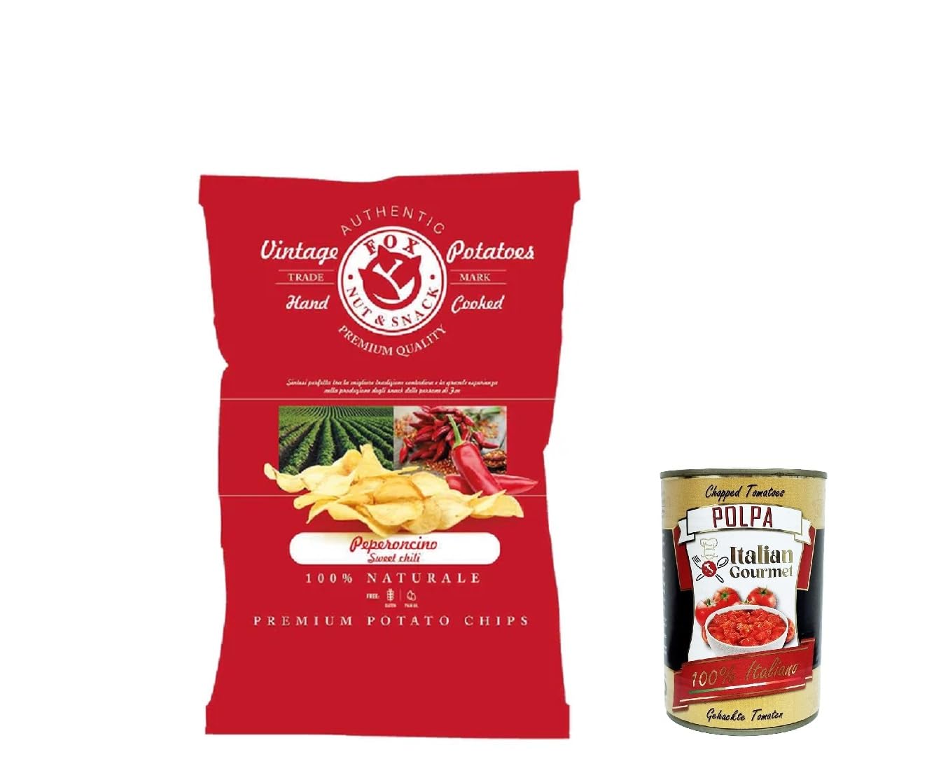 Fox Lot de 10 pommes de terre vintage de qualité naturelle avec piment, chips de pommes de terre italiennes de qualité supérieure faites à la main 120 g polpa gourmet italien 400 g