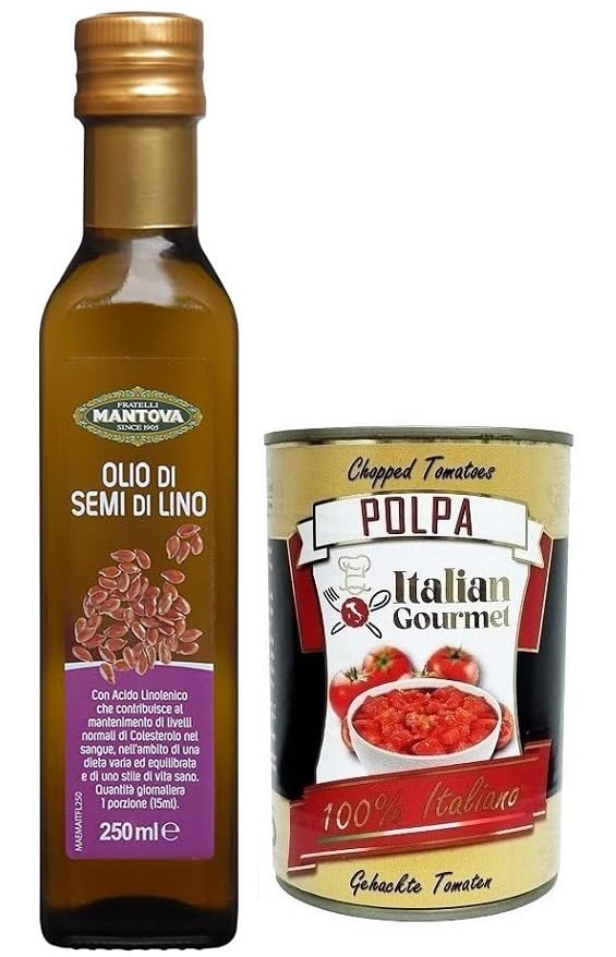 Italian Gourmet E.R. Fratelli Mantova Olio Semi Di Lino Lino Oil Rich in Omega 3 Glass 250ml + 400g Box