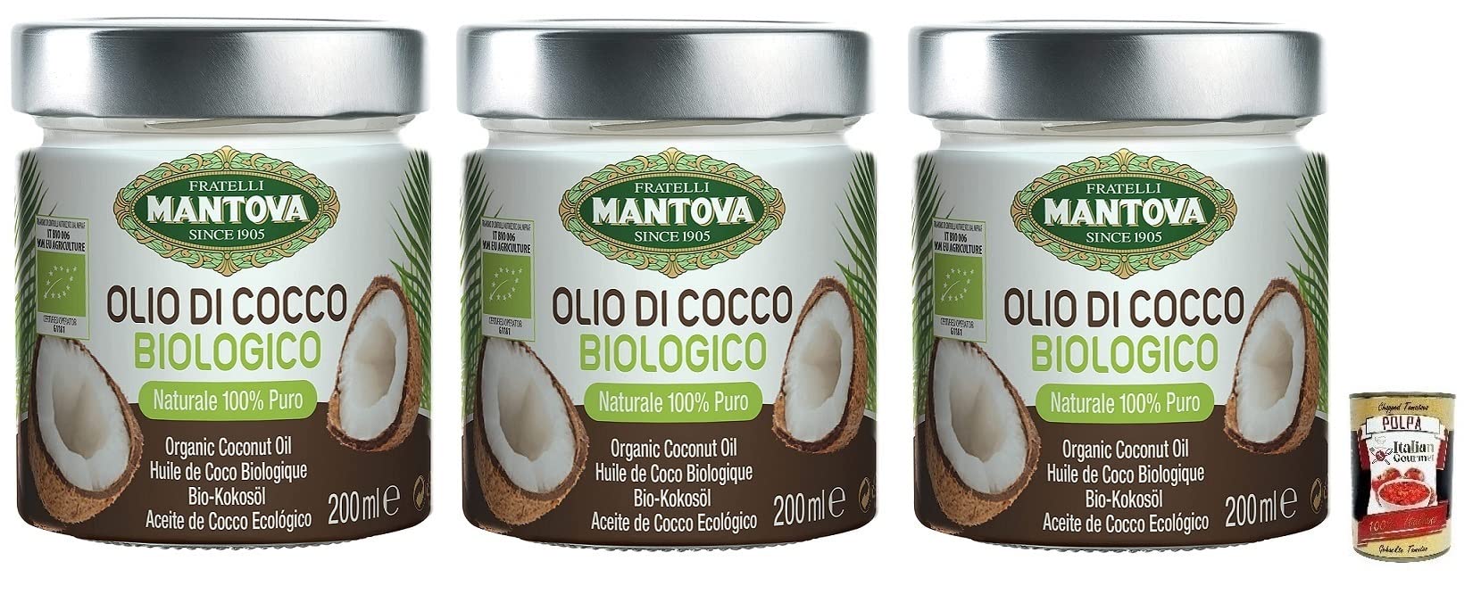 Italian Gourmet E.R. Fratelli Mantova Organic Coconut Oil 100% Natural 200 ml Glass + 400 g Box