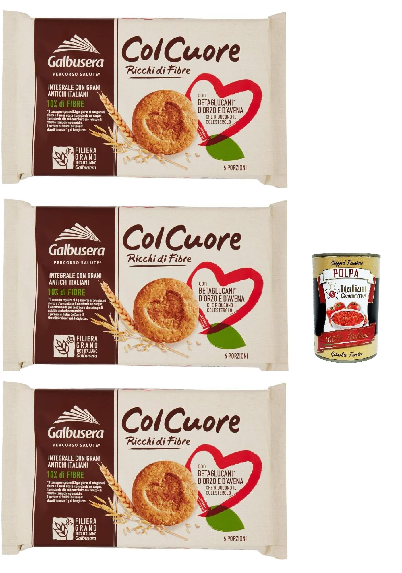 Italian Gourmet E.R. Galbusera Col Cuore - High Fibre Biscuits with Barley and Oat Beta Glucans - 300g + Italian Gourmet Polpa 400g