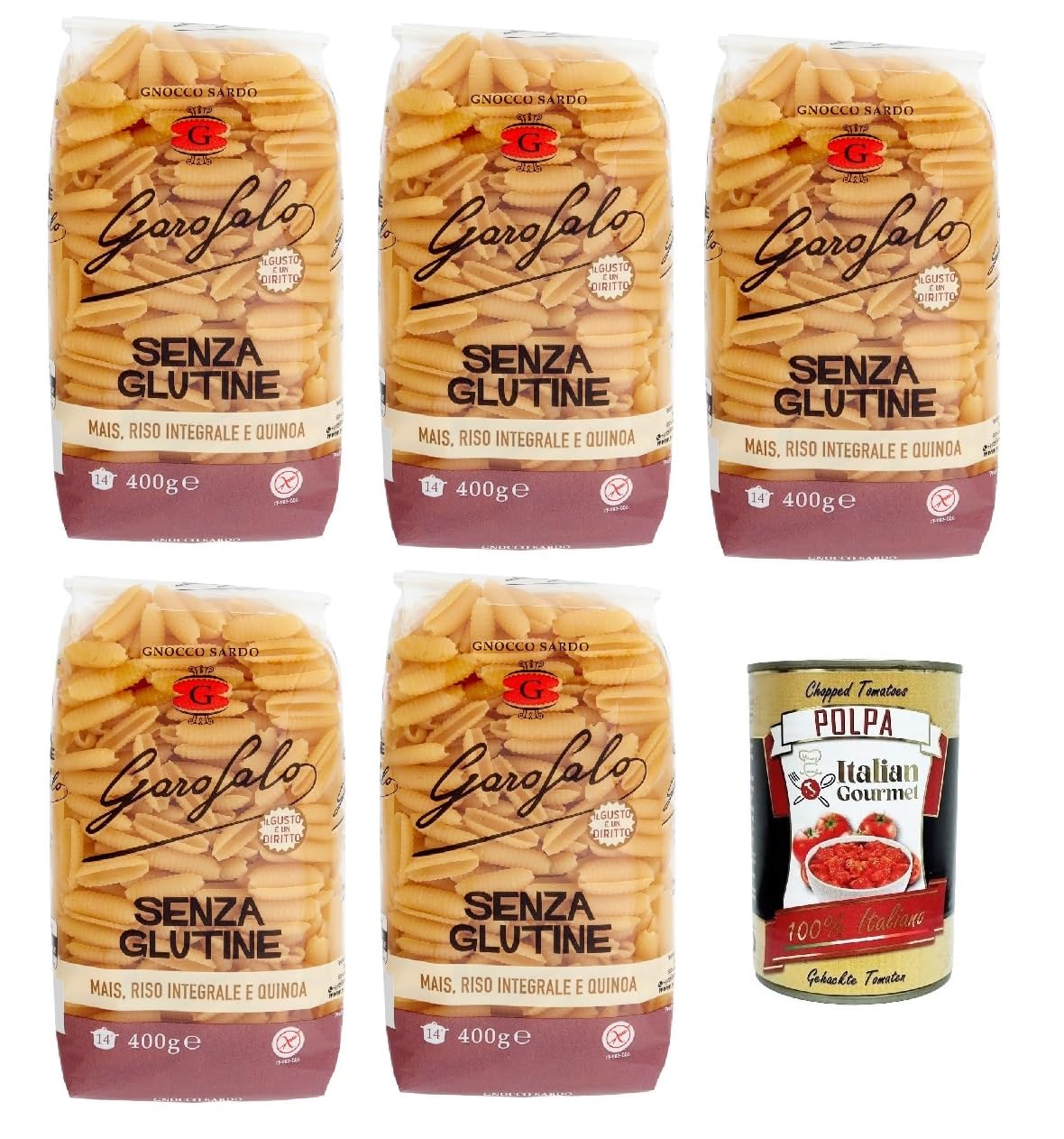 Italian Gourmet E.R. Garofalo Gnocco sardo Lot de 5 bo tes de 400 g Senza Glutine sans glutin sans gluten Pasta Noodles + Italian Gourmet Pulpa 400 g