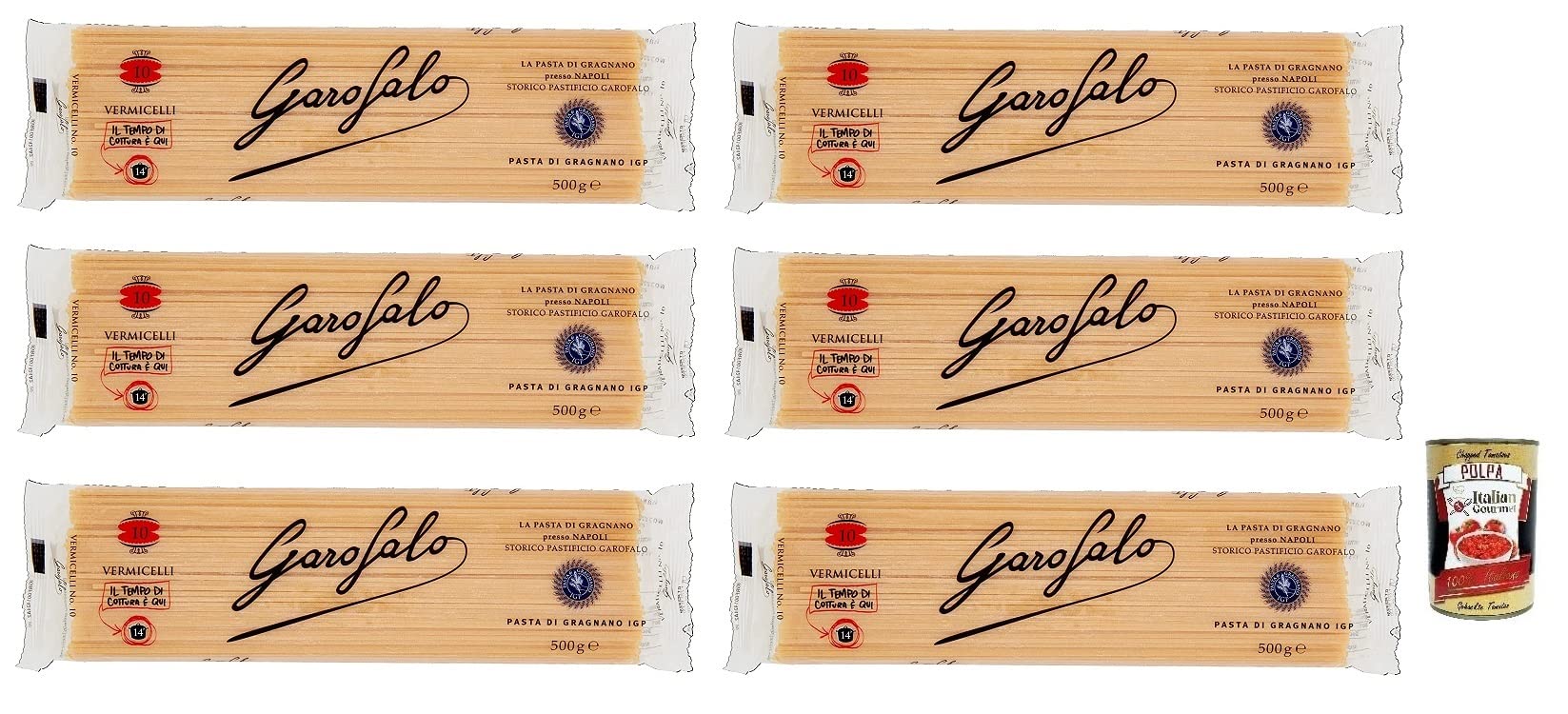 Italian Gourmet E.R. Garofalo Gragnano Pasta Vermicelli Pasta No. 10 500 g + 400 g Box of 6