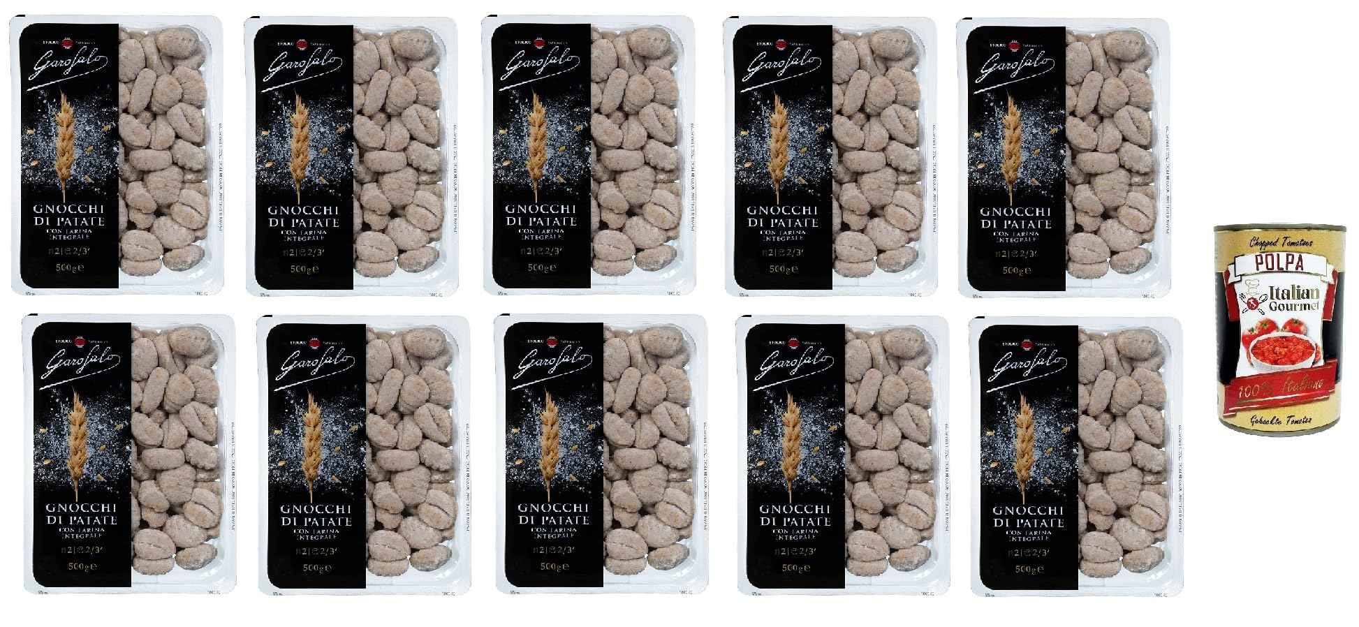 Italian Gourmet E.R. Garofalo Whole Grain Potato Gnocchi Pack of 10 Organic Durum Wheat Whole Grain Pasta 500g + Gourmet Italian Polpa 400g