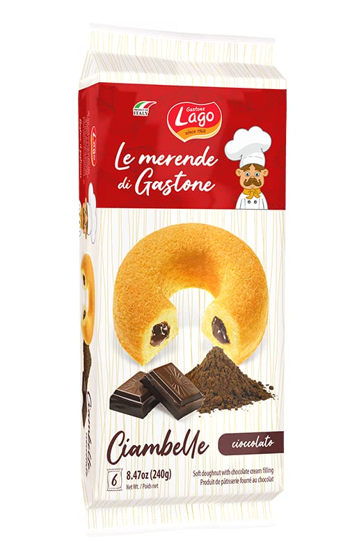 Gastone Lago Ciambelle Cioccolato Beignets Beignets farcis avec crème au chocolat Lot de 240 g, chaque paquet contient 6 donuts de 40 g