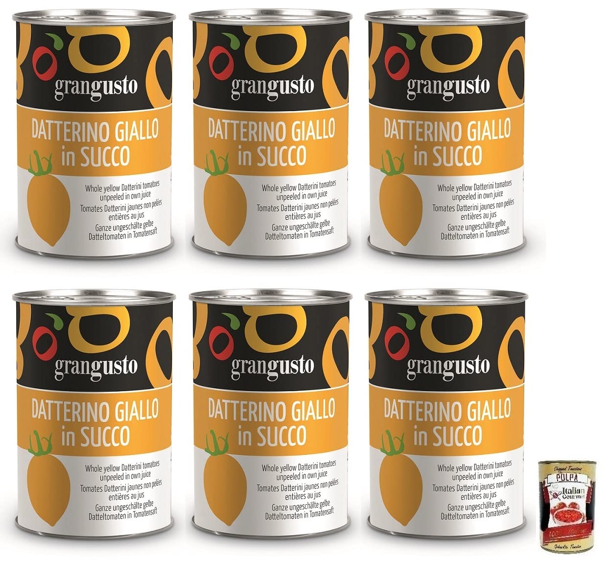 Italian Gourmet E.R. Grangusto Pomodoro Datterino Giallo Pack of 6 whole unpeeled yellow tomatoes in tomato juice Italian tomato 400g can + 400g can