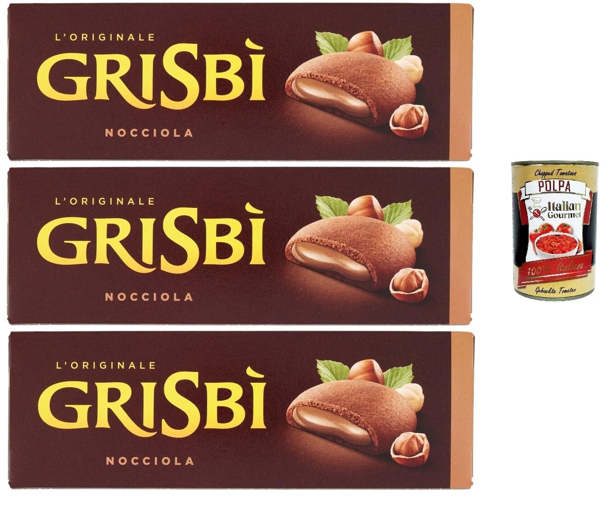 Italian Gourmet E.R. Grisb Nocciola Biscuits stuffed with hazelnut cream Italian cakes 3 x 135 g crispy on the outside and creamy on the inside by Matilde Vicenzi + Gourmet Italian Polpa 400 g