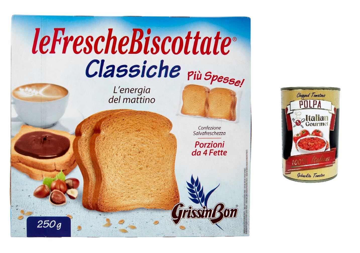Italian Gourmet E.R. Grissinbon Fresh Biscottate Pack of 12 Classic Biscottates Oven-baked Biscottates Pack of 250g each pack contains Biscottates + Italian Gourmet Polpa 400g