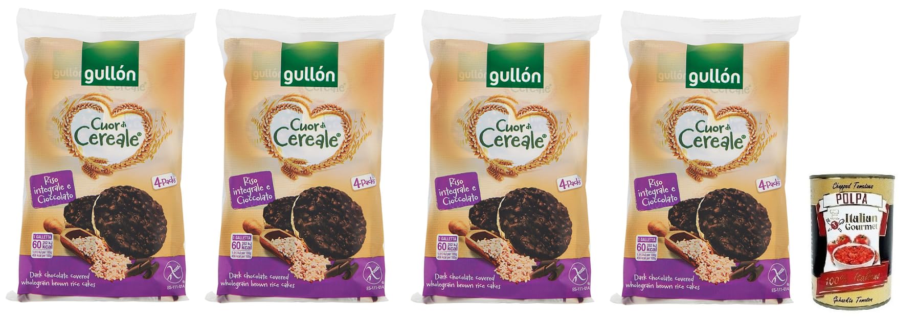 Gullón Cuor di Cereale Lot de 4 gaufres de riz à grains entiers enrobées de chocolat noir, sans gluten, 105,2 g 400 g