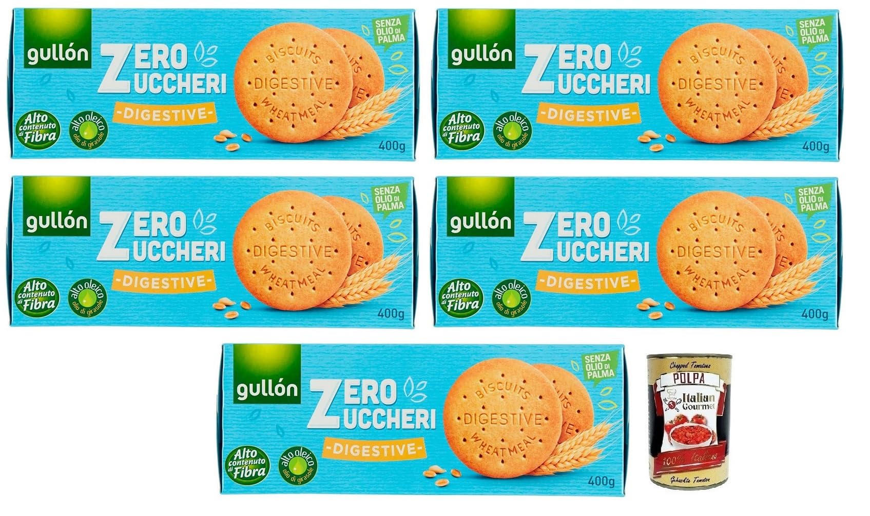 Gullón Digestive Biscotti Integrali Zero Zuccheri, biscuits entiers avec édulcorants sans sucre, paquet de 400 g boîte italienne Gourmet Polpa di Pomodoro 400 g