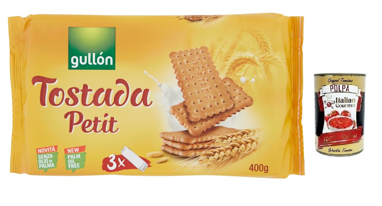 Gullón Petit Tostada Biscuits traditionnels, paquet de 400 g, chaque paquet contient 3 portions de 133,3 g Polpa di Pomodoro Italian Gourmet Polpa di Pomodoro 400 g