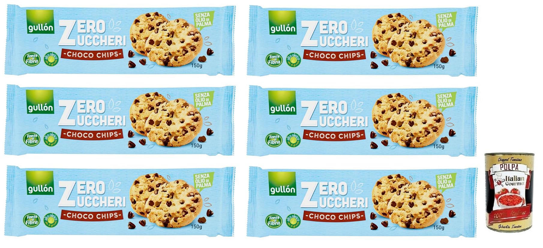 Gullón Choco Chips Senza Zuccheri, biscuits avec pépites de chocolat sans sucre, paquet de 150 g boîte italienne Gourmet Polpa di Pomodoro 400 g