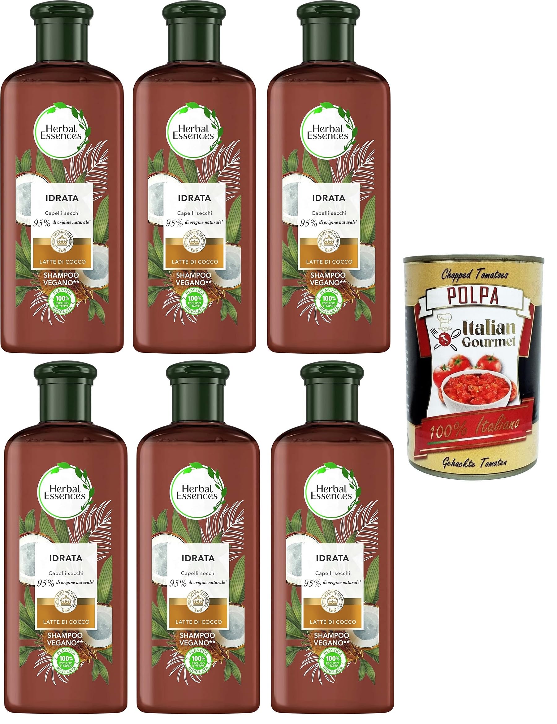 Herbal Essences Coconut Milk Shampoo, moisturizes dry hair, in collaboration with the Royal Botanic Gardens, Kew – 250 ml of coconut milk moisturizes dry hair. Recycled plastic bottle (no cap, colors, or additives) and recyclable. At Herbal Essences, we believe in the power of nature for beauty. That's why we've partnered with the Royal Botanic Gardens, Kew, a global agency for plants, to certify our genuine plant extracts. Herbal Essences Coconut Milk moisturizes dry hair and is a shampoo containing 90 naturally derived ingredients, sustainable natural ingredients, and an active antioxidant that helps cleanse and protect your hair. Purified water and limited-handling naturally derived ingredients. Water, Sodium Laureth Sulfate, Sodium Citrate, Betaine, Sodium Sulfonate, Sodium Chloride, Stearyl Alcohol, Fragrance, Cetyl Alcohol, Citric Acid, Sodium Benzoate, Guarhydroxypropyltrimonium Chloride, Sodium Salicylate, Trihydroxystearine, Tetranadium EDTA, Polyquaternium-6, Coumarin, Hexyl Cinnamon, Polyquaternium-10, Histidine, Linalool, Butylene Glycol, Glycerin, Aloe Barbadensis Leaf Juice, Cocos Nucifera Fruit Juice, Alcohol Denat., Sodium Acetate, Lactic Acid, Ecklonia Radiata Extract. INGREDIENTS Aqua Sodium Laureth Sulfate Sodium Cocamidopropyl Citrate Betaine Sodium Sulfonate Sodium Chloride Stearyl Alcohol Parfum Cetyl Alcohol Citric Acid Sodium Benzoate Guarhydroxypropyltrimonium Chloride Sodium Salicylate Trihydroxystearine Tetranadium EDTA Polyquaternium-6 Coumarin Hexyl Cinnamal Polyquaternium-10 Histidine Linalool Butylene Glycol Glycerin Aloe Barbadensis Leaf Juice Cocos Nucifera Fruit Juice Alcohol Denat. Sodium Acetate Extract Lactic Acid Ecklonia Radiata SAFETY WARNING For external use only. Avoid contact with eyes. See morePurified water and limited-handling, naturally sourced ingredients. Herbal Essences Coconut Milk moisturizes dry hair and is a shampoo containing 90 naturally sourced ingredients, sustainable natural ingredients, and an active antioxidant that helps cleanse and protect your hair. At Herbal Essences, we believe in the power of nature for beauty. That's why we've partnered with the Royal Botanic Gardens, Kew, a global agency for plants, to certify our genuine plant extracts. Recycled plastic bottle (no cap, colors, or additives) and recyclable. Free Gourmet Italian Polpa di Pomodoro, 400g.Herbal Essences Shampooing au lait de noix de coco, hydrate les cheveux secs, en collaboration avec les jardins botaniques Royal Botanic Gardens of Kew – 6 x 250 ml Italian Gourmet Polpa 400 gDESCRIPTION DU PRODUIT DESCRIPTION DU PRODUIT Herbal Essences Coconut Milk Shampoo, hydrate les cheveux secs, en collaboration avec les jardins botaniques Royal Botanic de Kew – 250 ml de lait de coco hydrate les cheveux secs. Flacon recyclé en plastique recyclé (sans bouchon, colorants et additifs) et recyclable. Chez Herbal Essences, nous croyons en la force de la nature pour la beauté. C'est la raison pour laquelle nous nous sommes associés aux jardins botaniques royaux de Kew, une agence mondiale pour les plantes, pour certifier nos véritables extraits de plantes. Le lait de coco Herbal Essences hydrate les cheveux secs et est un shampooing contenant 90 d'ingrédients d'origine naturelle, des ingrédients naturels durables et un antioxydant actif qui aide à nettoyer et à protéger vos cheveux. Eau purifiée et ingrédients d'origine naturelle à manipulation limitée. Aqua Sodium Laureth Sulfate de sodium Citrate de cocamidopropyl bétaïne Sulfonate de sodium Chlorure de sodium Alcool stéarylique Parfum Alcool cétylique Acide citrique Benzoate de sodium Guarhydroxypropyltrimonium Chlorure de sodium Salicylate de sodium Trihydroxystéarine Tetranadium EDTA Polyquaternium. 6 coumarine hexylcannelle polyquaternium-10 histidine linalol butylène glycol glycérine aloe barbadensis jus de feuilles cocos nucifera jus de fruits alcool denat. Acétate de sodium, acide lactique, extrait Ecklonia Radiata. INGRÉDIENTS Aqua Sodium Laureth Sulfate de sodium Citrate de cocamidopropyl bétaïne Sulfonate de sodium Chlorure de sodium Alcool stéarylique Parfum Alcool cétylique Acide citrique Benzoate de sodium Guarhydroxypropyltrimonium Chlorure de sodium Salicylate de sodium Trihydroxystéarine Tetranadium EDTA Polyquaternium. 6 coumarine hexylcannelle polyquaternium-10 histidine linalol butylène glycol glycérine aloe barbadensis jus de feuilles cocos nucifera jus de fruits alcool denat. Extrait d'acétate de sodium acide lactique Ecklonia Radiata AVERTISSEMENT DE SÉCURITÉ Pour usage externe uniquement, éviter tout contact avec les yeux Voir plusEau purifiée et ingrédients d'origine naturelle à manipulation limitée. Le lait de coco Herbal Essences hydrate les cheveux secs et est un shampooing contenant 90 d'ingrédients d'origine naturelle, des ingrédients naturels durables et un antioxydant actif qui aide à nettoyer et à protéger vos cheveux. Chez Herbal Essences, nous croyons au pouvoir de la nature pour la beauté. C'est la raison pour laquelle nous nous sommes associés aux jardins botaniques royaux de Kew, une agence mondiale pour les plantes, pour certifier nos véritables extraits de plantes. Bouteille de recyclage en plastique recyclé (sans bouchon, colorants et additifs) et recyclable. Gourmet Italian Gourmet Polpa di pomodoro gratuit, 400 g.