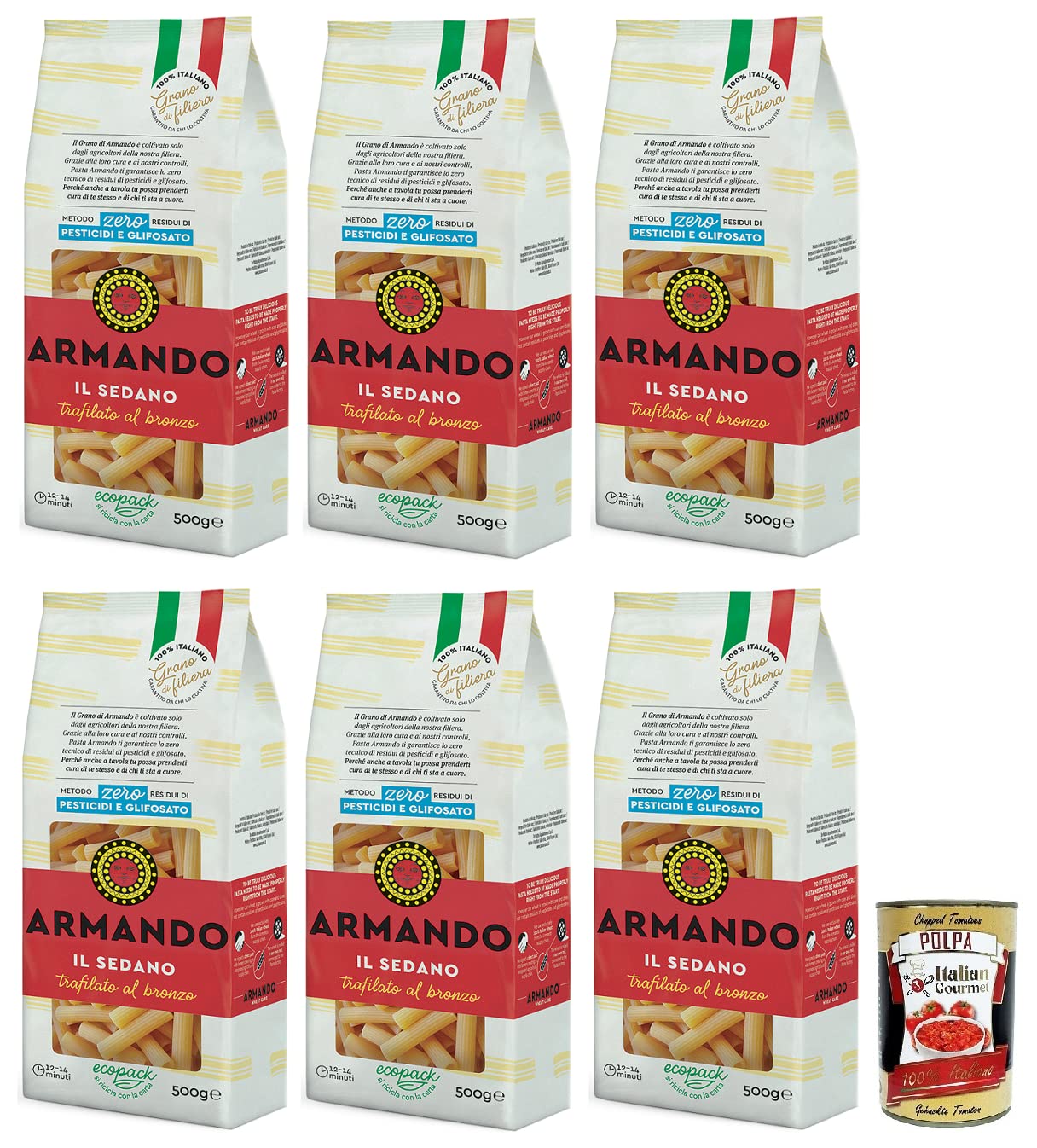 Armando Il Sedano Lot de 6 pâtes tirées en bronze 100 pâtes italiennes 500 g boîte de 400 g