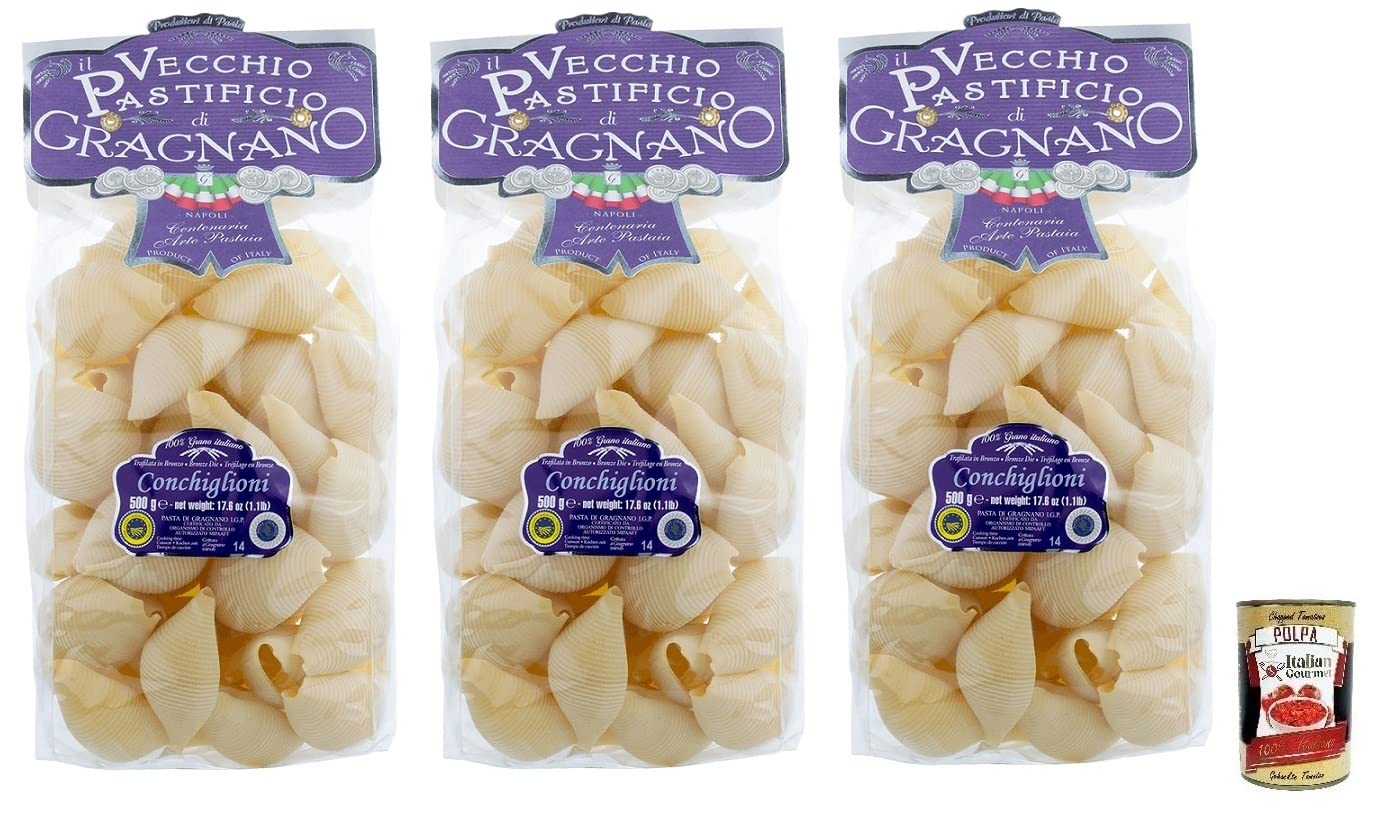 Italian Gourmet E.R. Il Vecchio Pastificio di Gragnano Pasta Conchiglioni Gragnano Durum Wheat Semolina Pasta 500g + 400g Box of 3