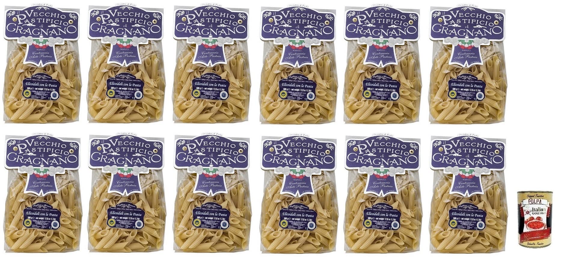 Italian Gourmet E.R. Il Vecchio Pastificio di Gragnano Pasta Elicoidali Gragnano PGI Premium Durum Wheat Semolina 500 g + 400 g Box of 12
