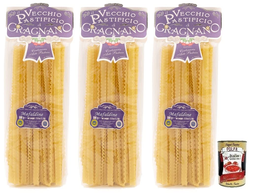 Italian Gourmet E.R. Il Vecchio Pastificio di Gragnano Pasta Mafaldine Set of 3 IGP Gragnano pasta made from high-quality durum wheat semolina 500 g + box of 400 g