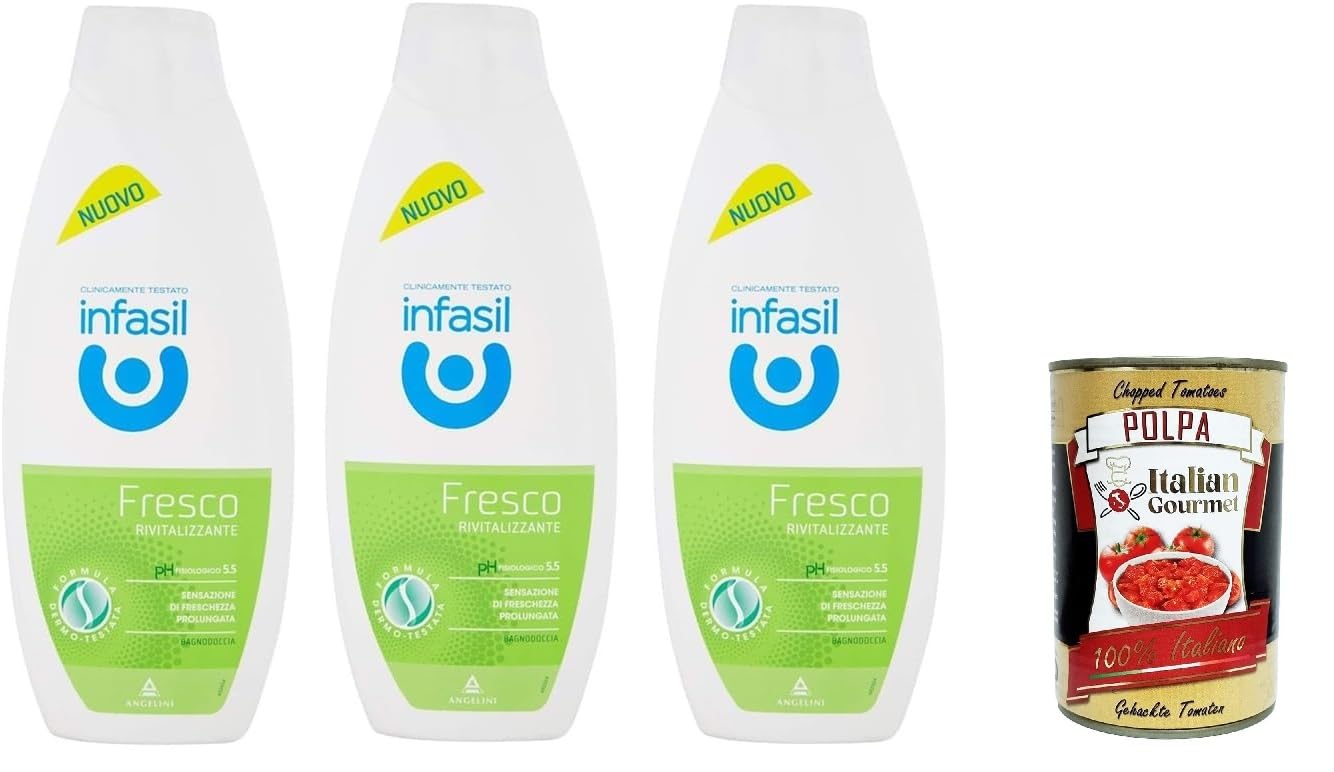 Recommandé par Infasil parce qu'il est idéal pour ceux qui veulent retrouver la propreté de leur enfant. Corps hygiénique Infasil : haute qualité et tolérance à côté de vous et de votre famille. Une gamme complète de produits de soins corporels. Sensation agréable : vous laisse la sensation agréable de ne pas avoir besoin d'autres produits tels que des crèmes pour le corps, des huiles, des lotions après la douche. Ce que la peau désire : donne à la peau ce que la peau désire. Bonne texture, quantité et intensité de parfum appropriées, pH physiologique 5,5, quantité correcte de mousse. Fraîcheur prolongée : un regain de fraîcheur longue durée. Polpa di pomodoro italien gourmet gratuit 400 g.
